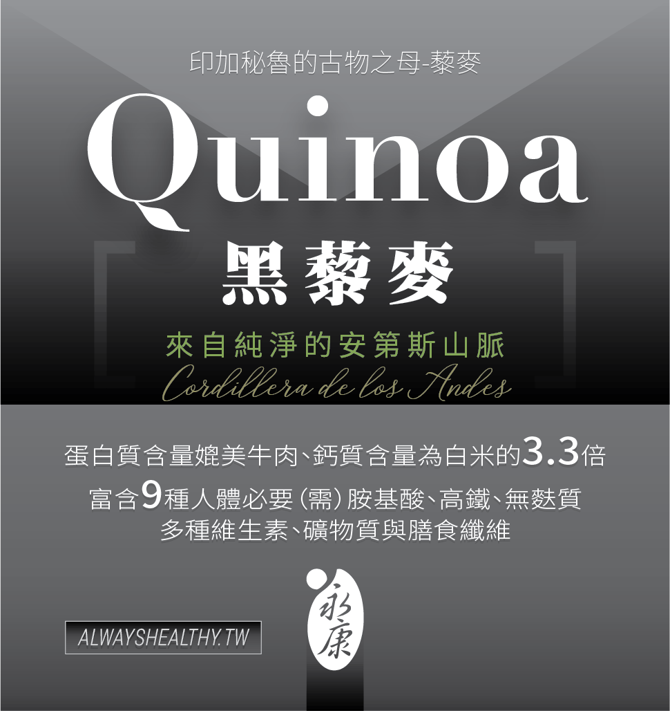 藜麥營養豐富,含有天然健康元素價值更勝人工補給,非常適合蔬食族、母嬰族、樂齡族及健美族選用。